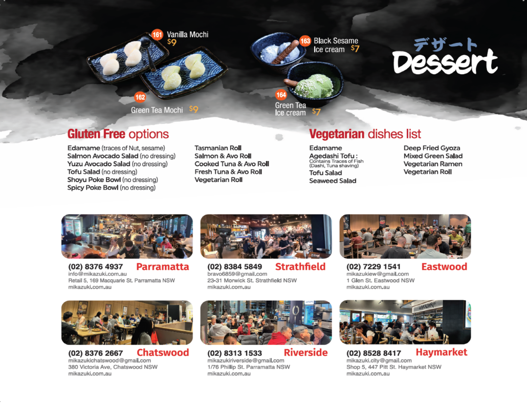 Sydney University) AND 23 Morwick St. Strathfield where our chefs