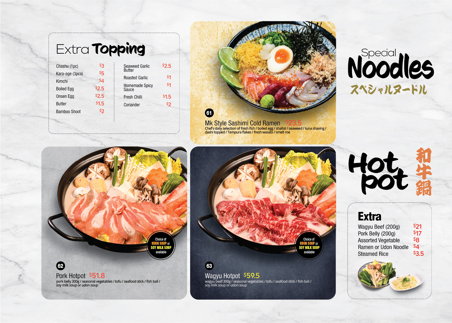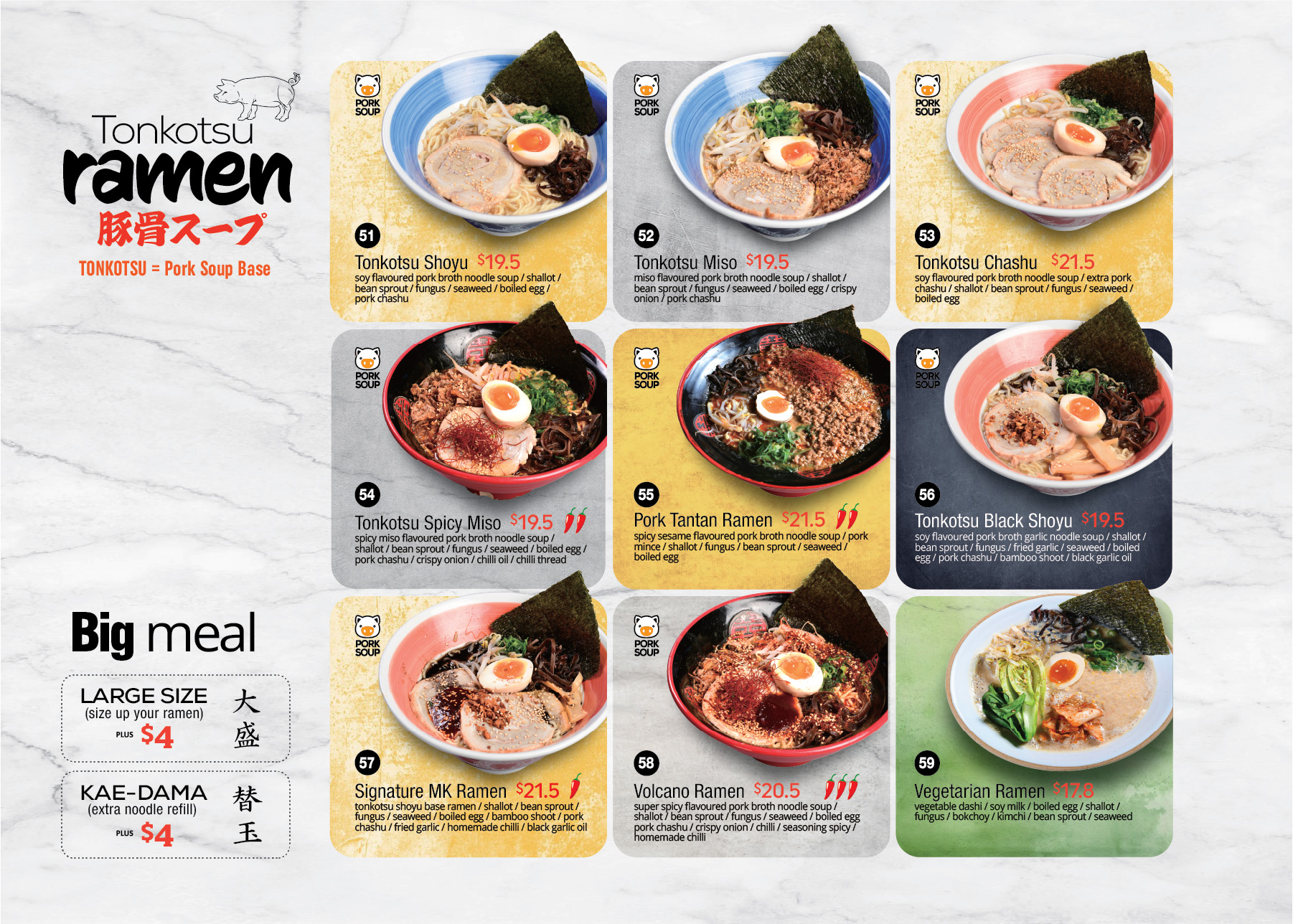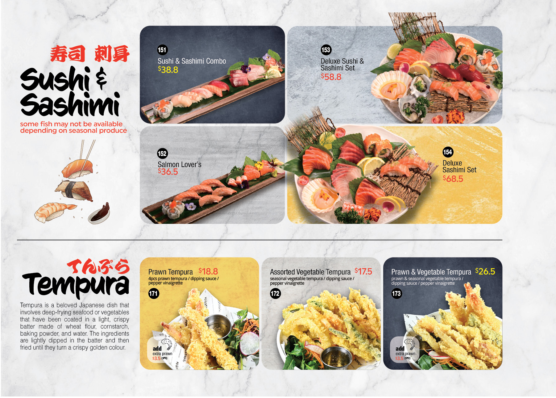 entire Japanese cuisine, which includes ramen, fish, meat, and