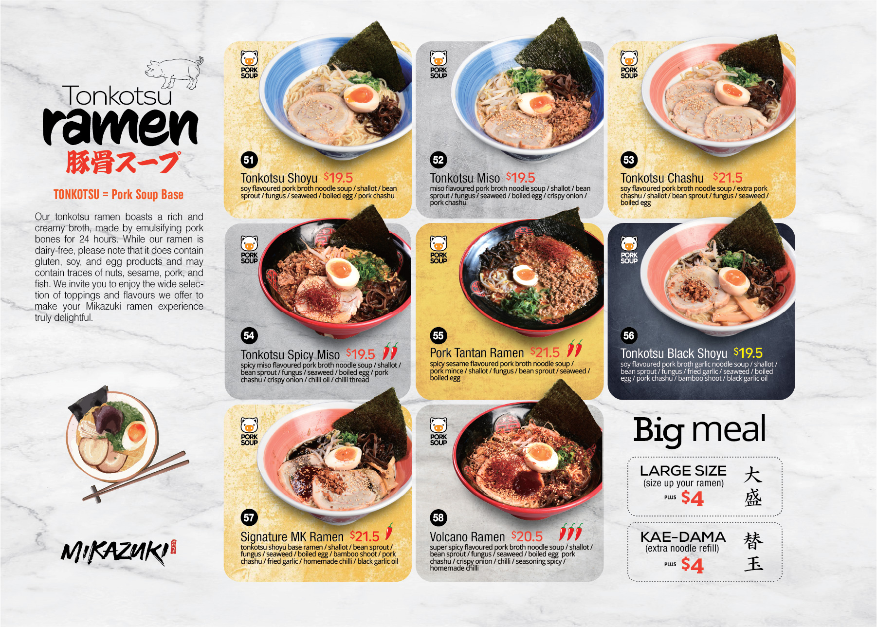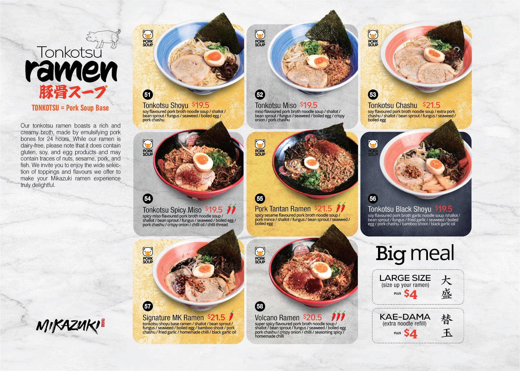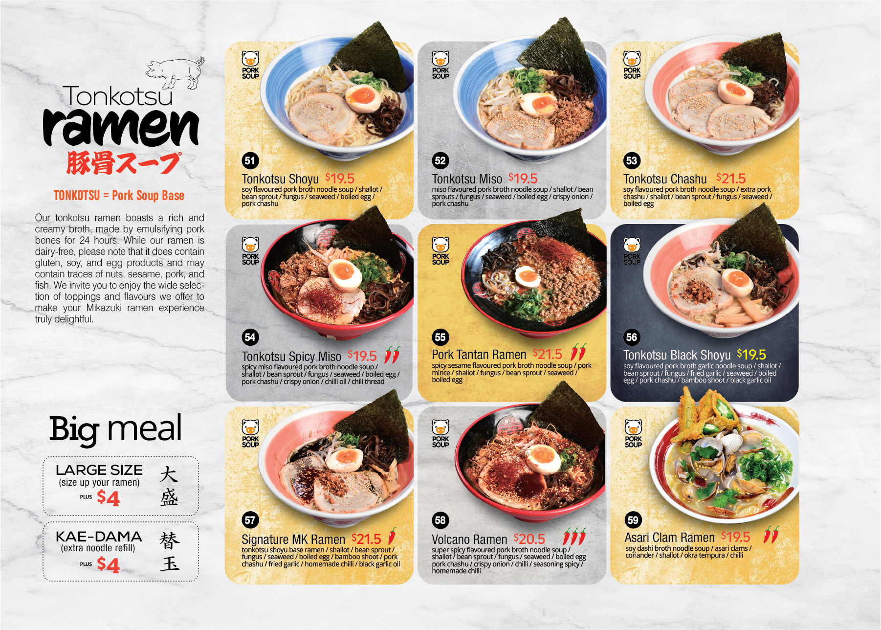 entire Japanese cuisine, which includes ramen, fish, meat, and
